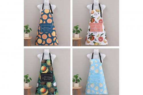 Фартукам и кухонным наборам не нужен особенный уход - достаточно постирать их вручную или в машинке при 40-60°С без отбеливания, бережно отжать и просушить в тени. Гладить рекомендуется отпаривателем или же утюгом с увлажнением.