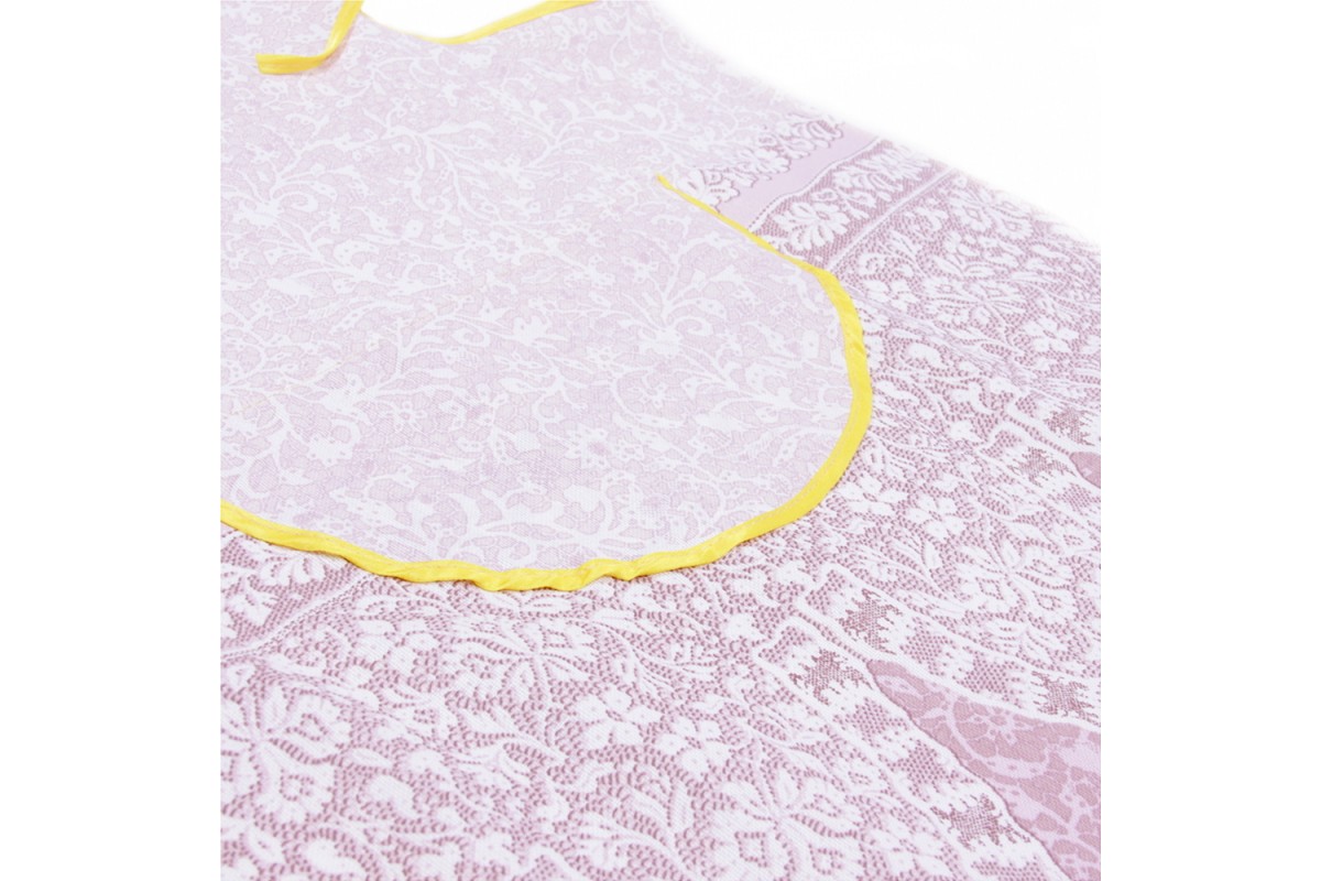 Фартукам и кухонным наборам не нужен особенный уход - достаточно постирать их вручную или в машинке при 40-60°С без отбеливания, бережно отжать и просушить в тени. Гладить рекомендуется отпаривателем или же утюгом с увлажнением.