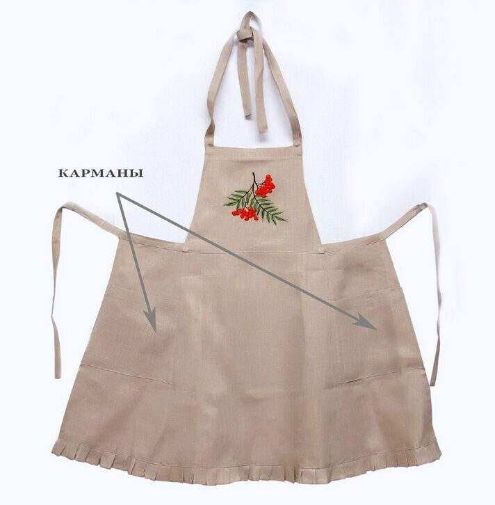 Льняной кухонный фартук-сувенир модель ЛП 181-17 "Рябина" с вышивкой. Лен 100%.