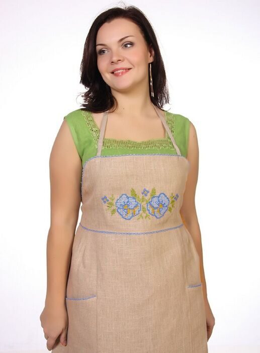 Фартук с вышивкой модель ЛП 78-11 "Незабудка"-голуб. лен 100%