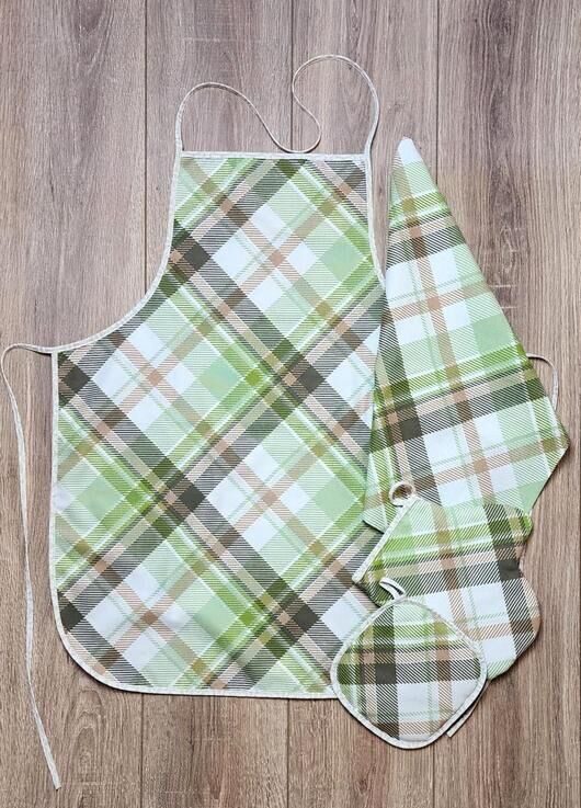 Кухонный набор "Клетка"-зелен. 4 пр. рогожка хлопок 100%