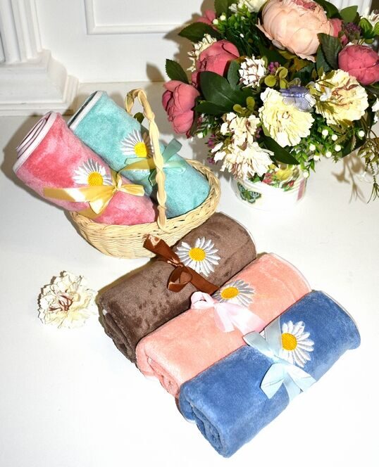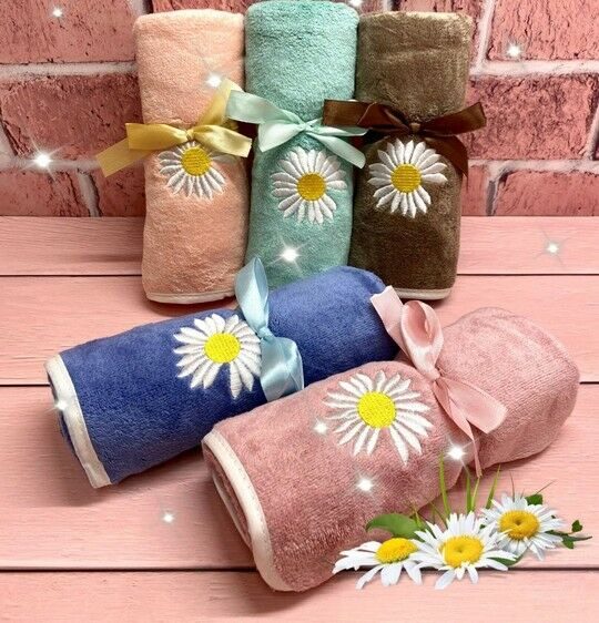 Полотенце из микрофибры "Ромашки" с атласной каймой 35*75 см.