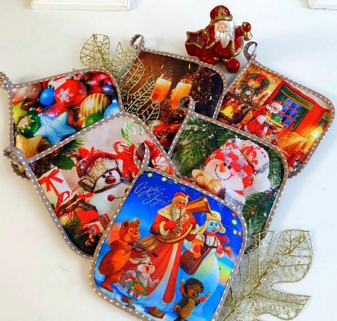 Прихватка "Новогодние игрушки" рогожка хлопок 100%