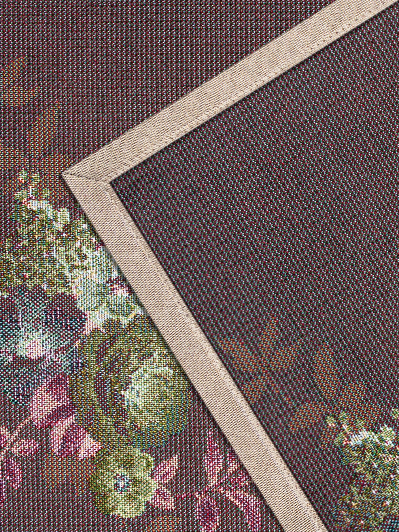 Рисунок создается переплетением нитей различных цветов и фактуры. Состав ткани: хлопок ( дающий фактуру и приятную тактильность ) и синтетические нити ( придающие износостойкость ). Плотность гобелена 410 г на кв.метр.