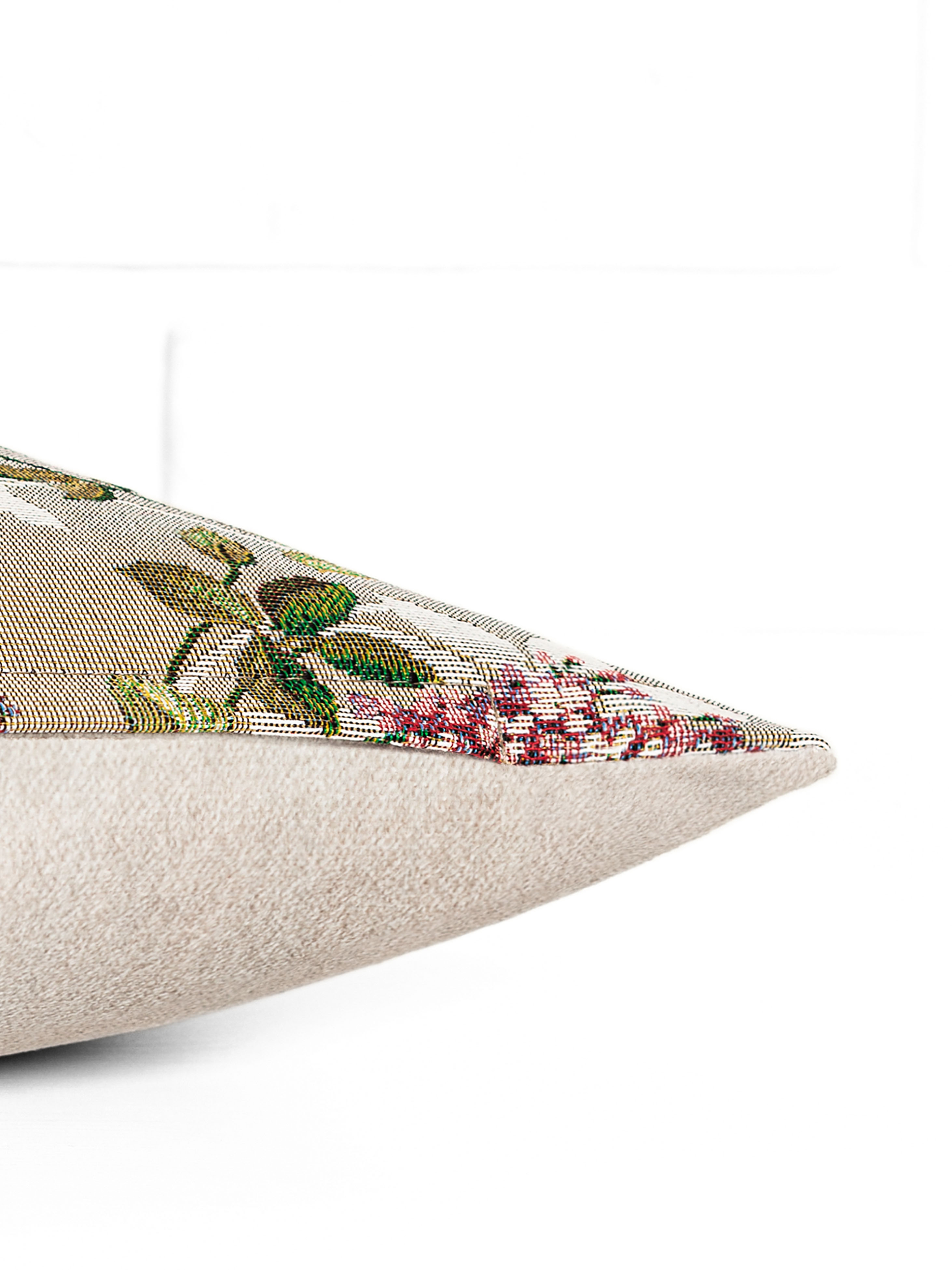 Рисунок создается переплетением нитей различных цветов и фактуры. Состав ткани: хлопок ( дающий фактуру и приятную тактильность ) и синтетические нити ( придающие износостойкость ). Плотность гобелена 410 г на кв.метр.