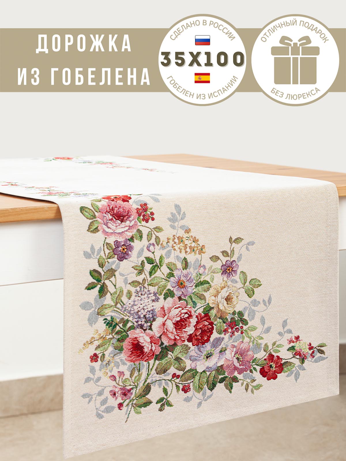 Рисунок создается переплетением нитей различных цветов и фактуры. Состав ткани: хлопок ( дающий фактуру и приятную тактильность ) и синтетические нити ( придающие износостойкость ). Плотность гобелена 410 г на кв.метр.