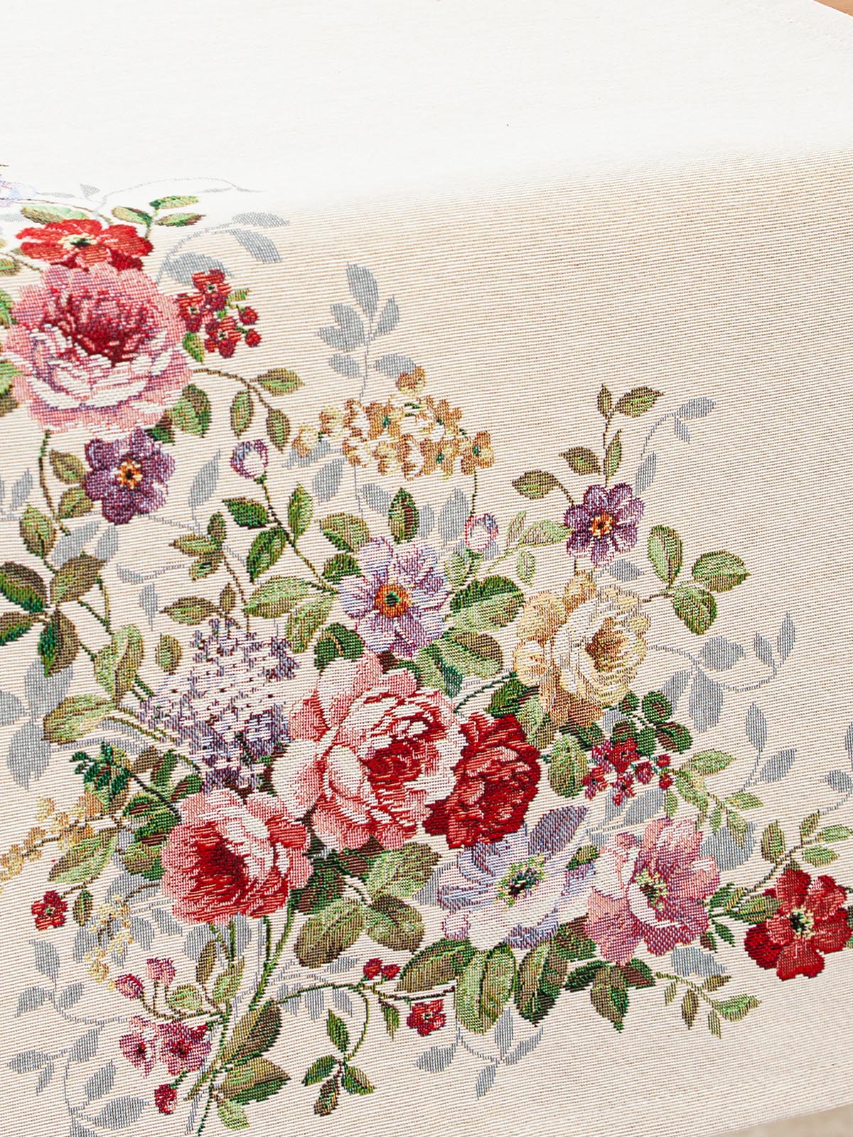 Рисунок создается переплетением нитей различных цветов и фактуры. Состав ткани: хлопок ( дающий фактуру и приятную тактильность ) и синтетические нити ( придающие износостойкость ). Плотность гобелена 410 г на кв.метр.