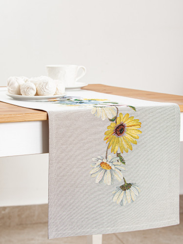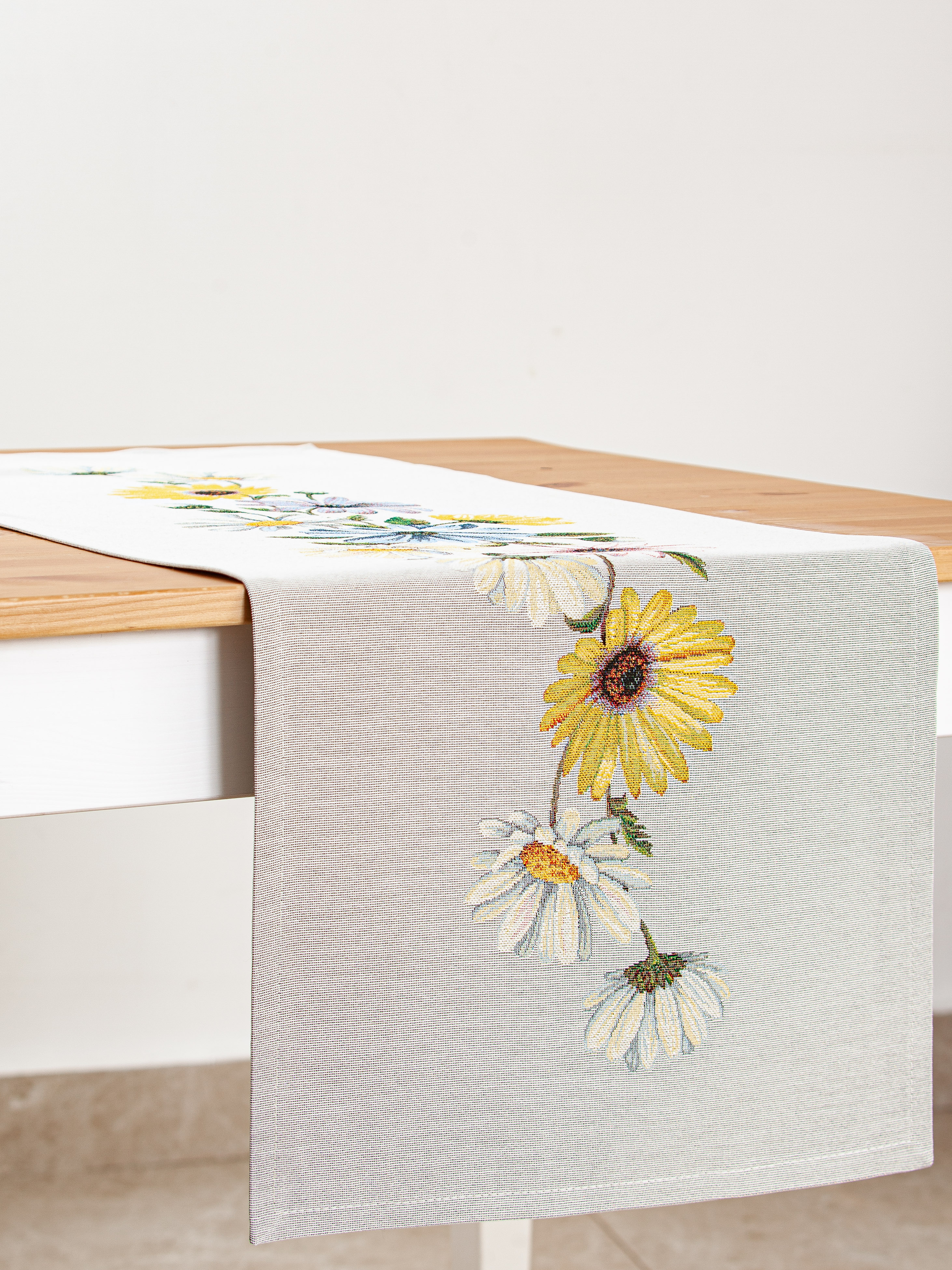Рисунок создается переплетением нитей различных цветов и фактуры. Состав ткани: хлопок ( дающий фактуру и приятную тактильность ) и синтетические нити ( придающие износостойкость ). Плотность гобелена 410 г на кв.метр.