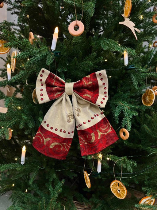 Рождественская ночь Красный бордюр Бант 22х22 см 2520505