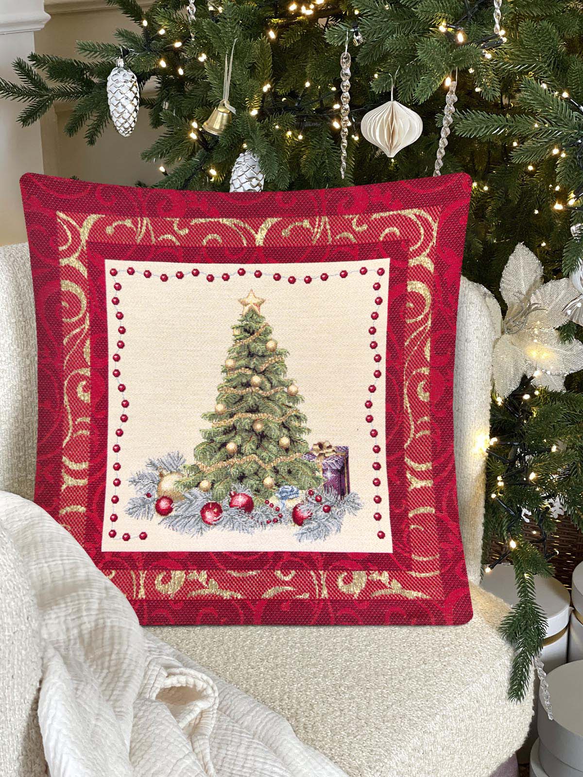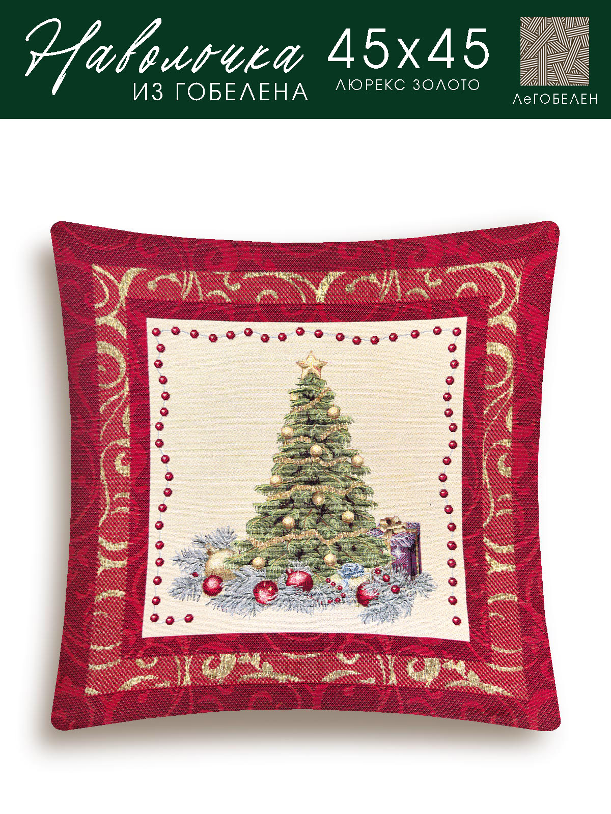 Рождественская ночь красный бордюр Елка Наволочка 45х45 см 2102433