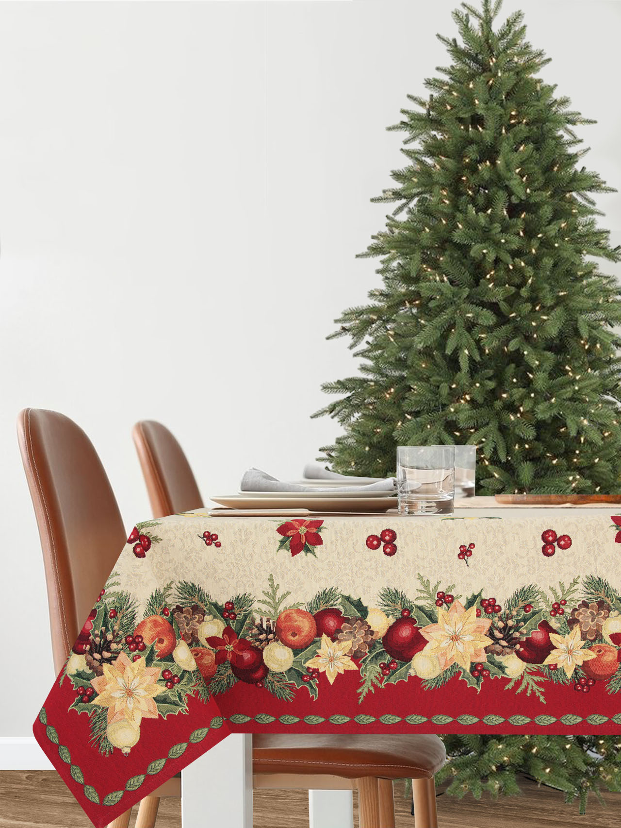 Рождественская звезда красный бордюр Скатерть 140х240 см 2310339 золото