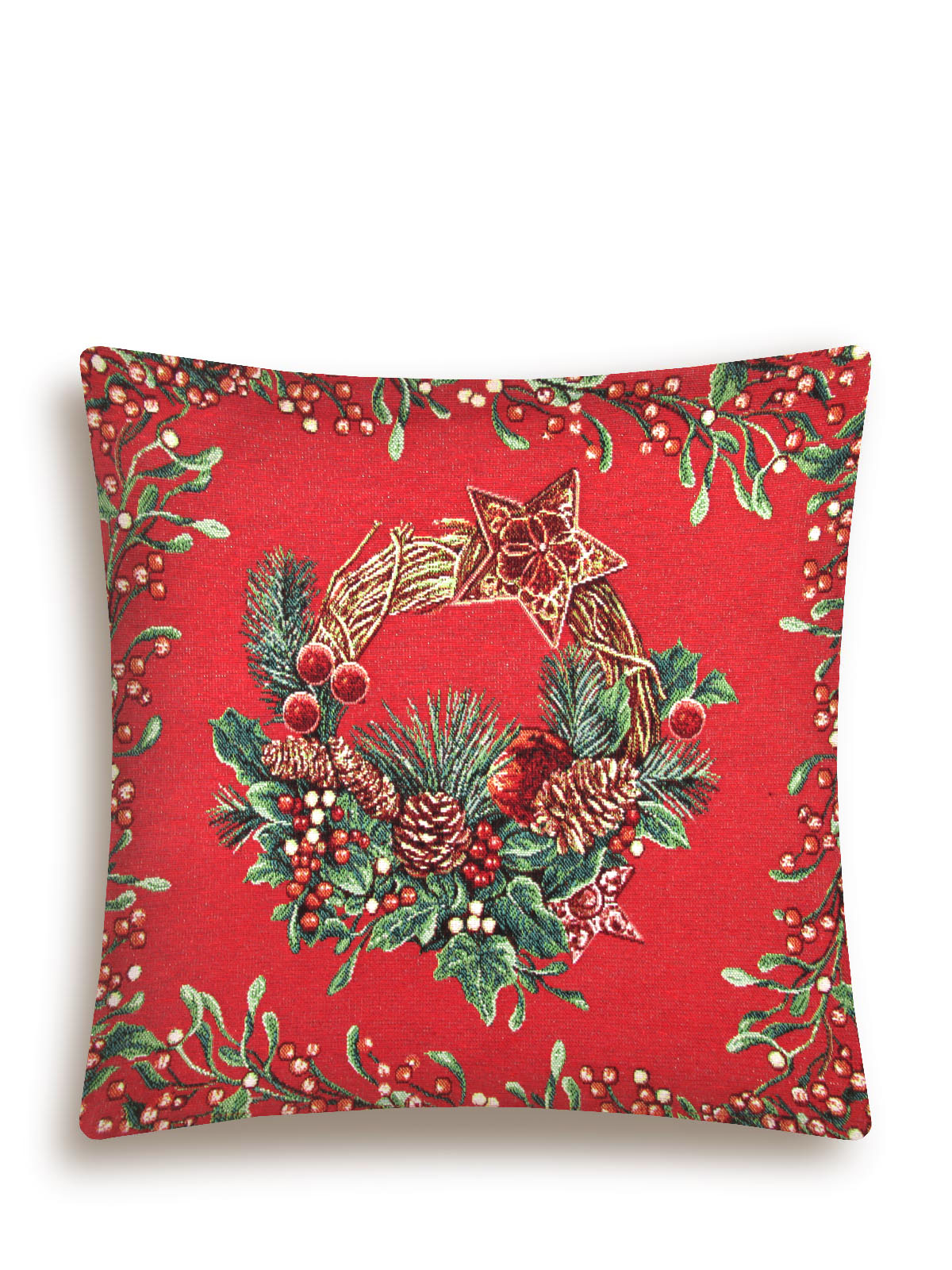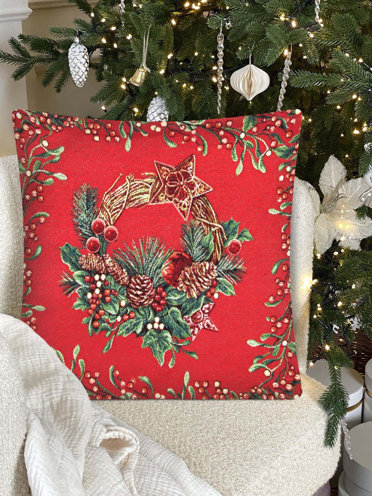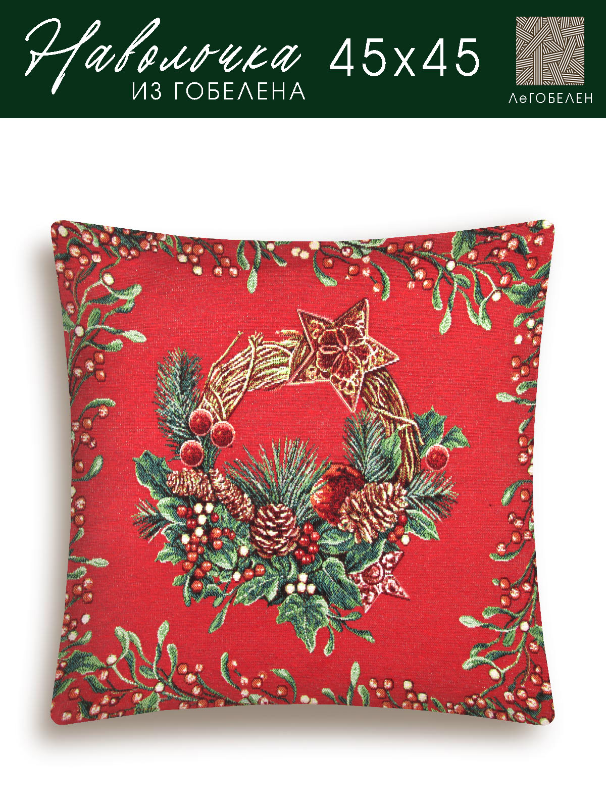 Рождественский венок Ягоды красный Наволочка 45х45 см 2101386