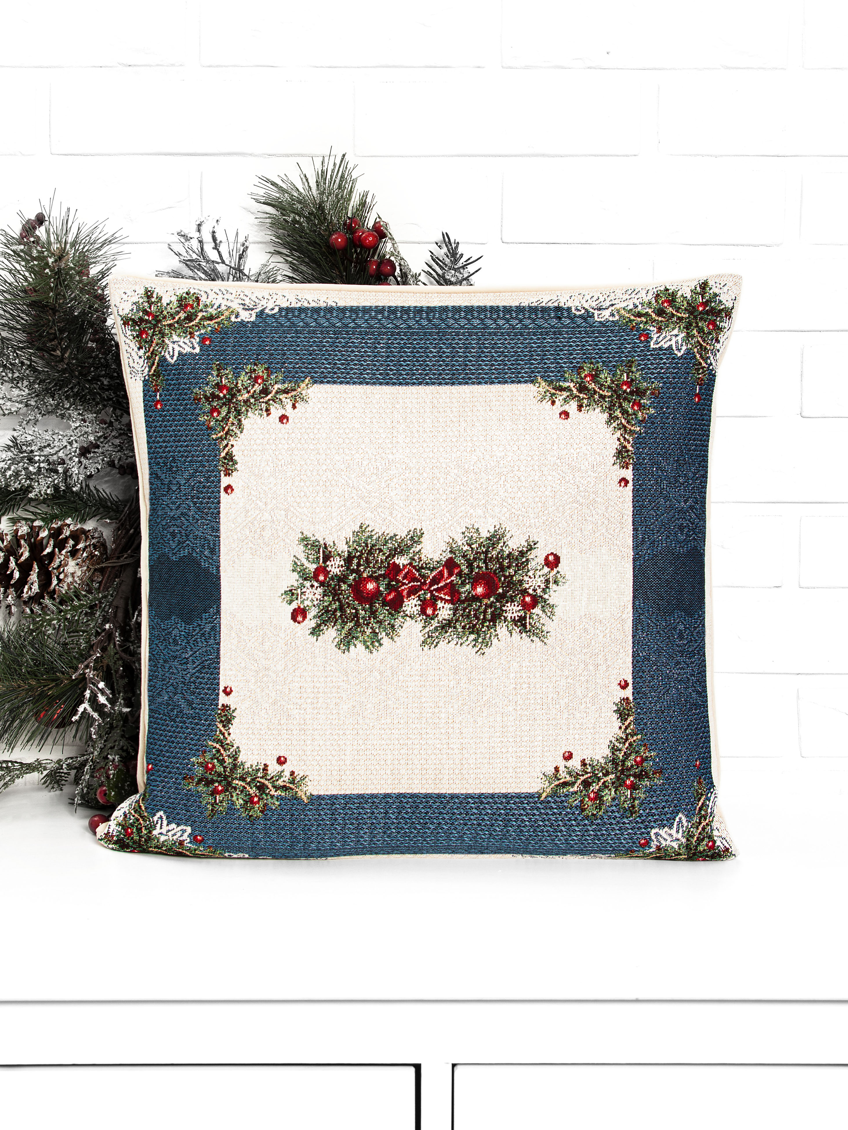 Рождественское кружево Синий Наволочка 45х45 см серебро 2105945