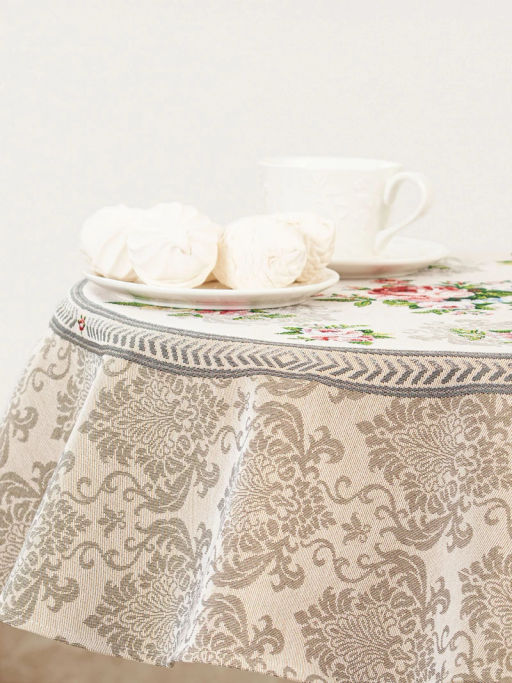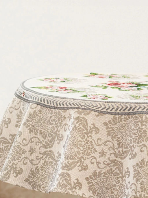Розы Дамаск бежевый фон Салфетка круг д93 см 2100419 подгиб