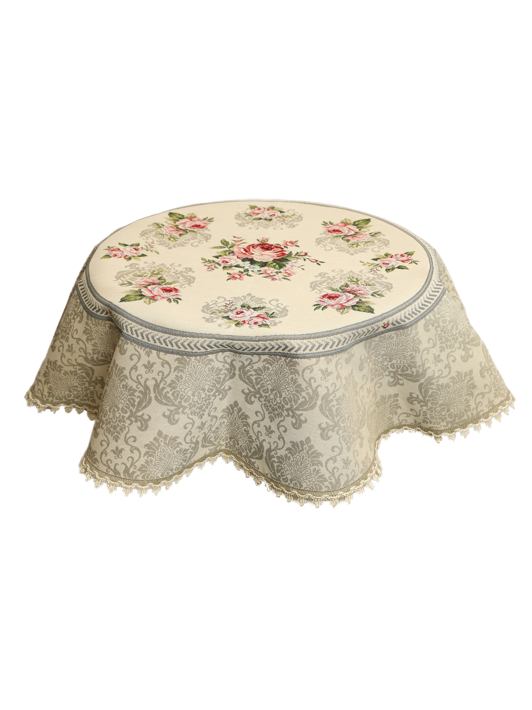 Розы Дамаск бежевый фон Салфетка круг д93 см 2107079 тесьма