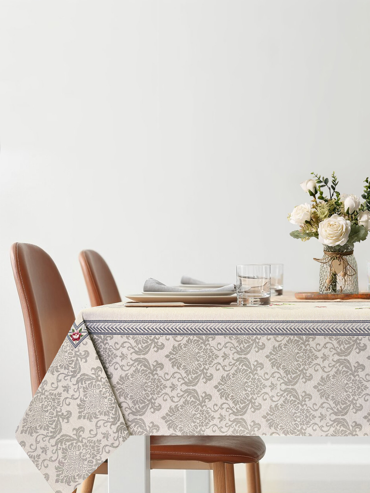Розы Дамаск бежевый фон Скатерть 140х240 см 2100256