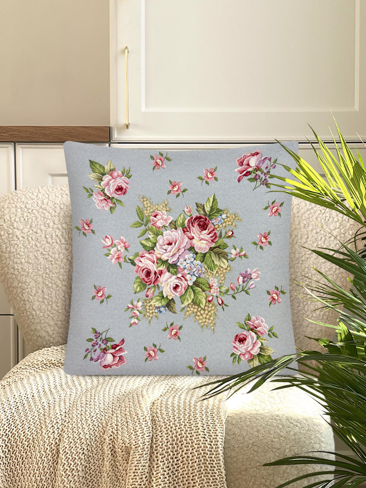 Розы Дамаск крупные цветы лилово-серый фон Наволочка 45х45 см 2102955