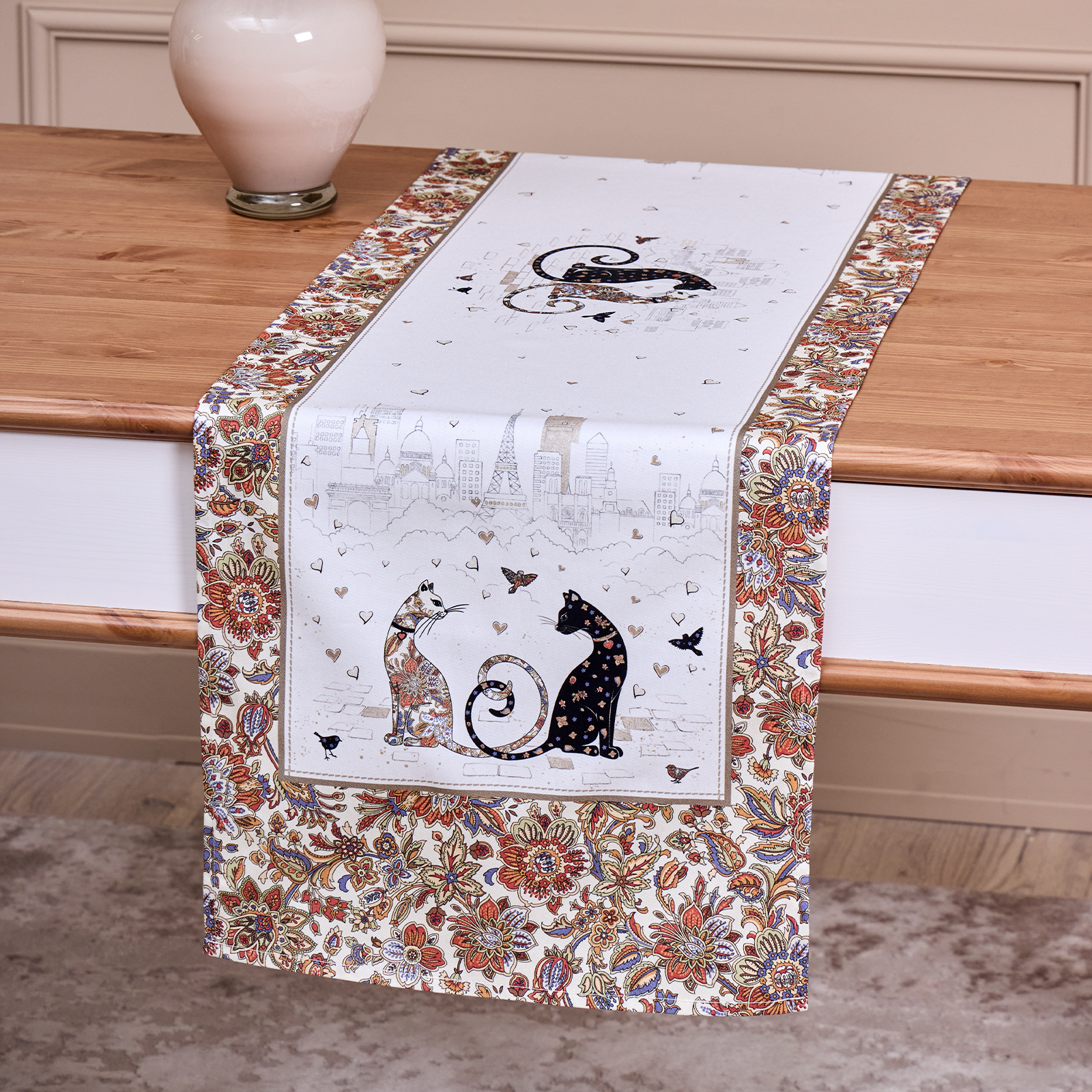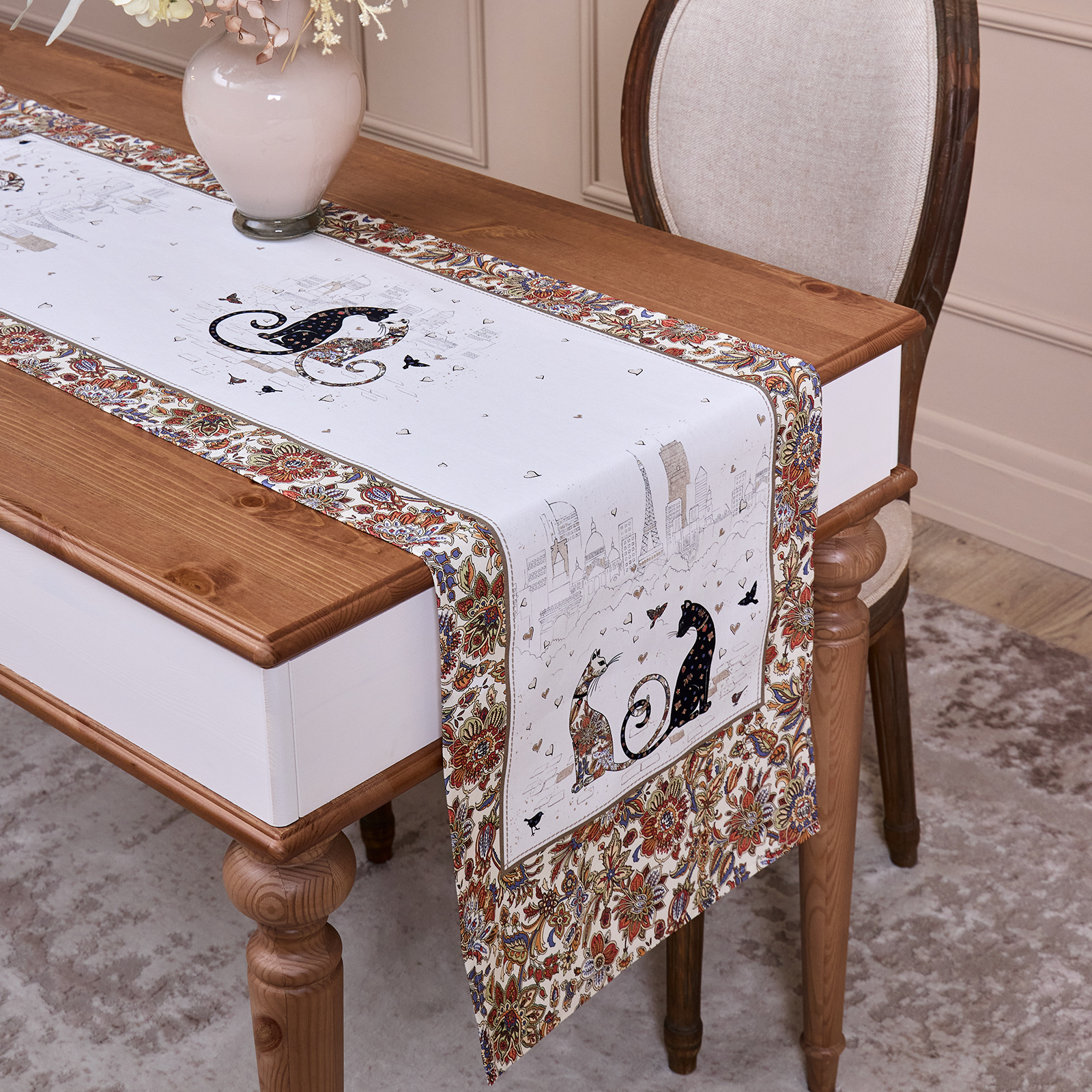 ДОРОЖКА "ПАРИЖСКИЕ КОТЫ",40Х146СМ, БЕЛЫЙ,100% ХЛОПОК,ТВИЛ