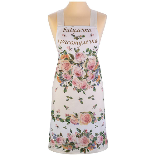 ФАРТУК "ВИНТАЖ, БАБУЛЕЧКА КРАСОТУЛЕЧКА" 60х70 СМ КРЕМОВЫЙ, 100% ХЛОПОК,ТВИЛ ПРОПИТКА