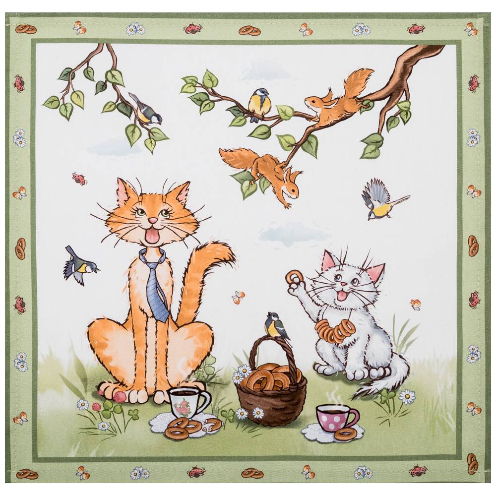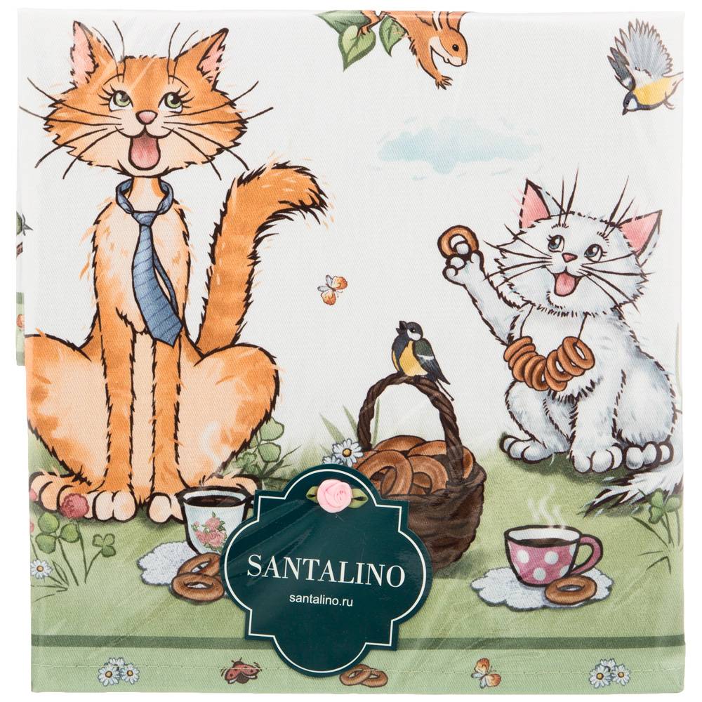 Сюжет с забавными котами и аппетитной тематикой на бело-зелёном фоне смотрится ярко и оригинально. Благодаря качественной цифровой печати рисунок отличается высокой детализацией и устойчивостью к стирке — цвета не тускнеют даже при активном использовании.