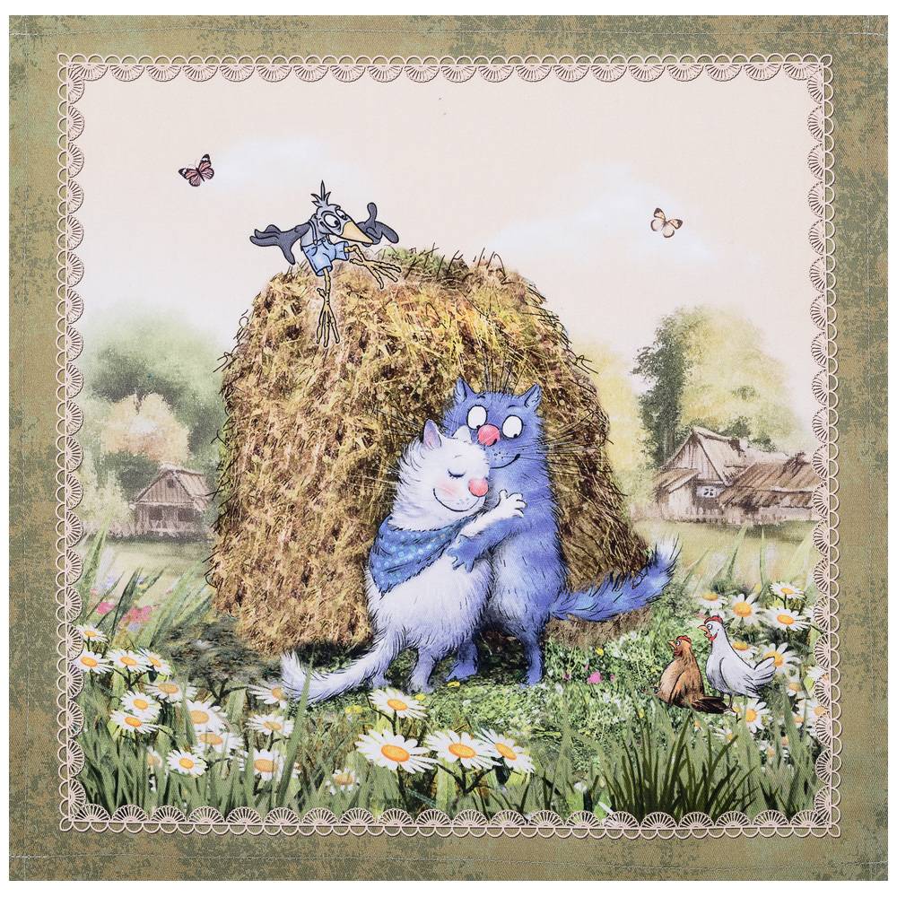 НАБОР САЛФЕТОК ИЗ 2-Х ШТ "СИНИЕ КОТЫ. ПРО ЛЮБОВЬ",40Х40СМ, 100% ХЛОПОК,ТВИЛ, БЕЖ
