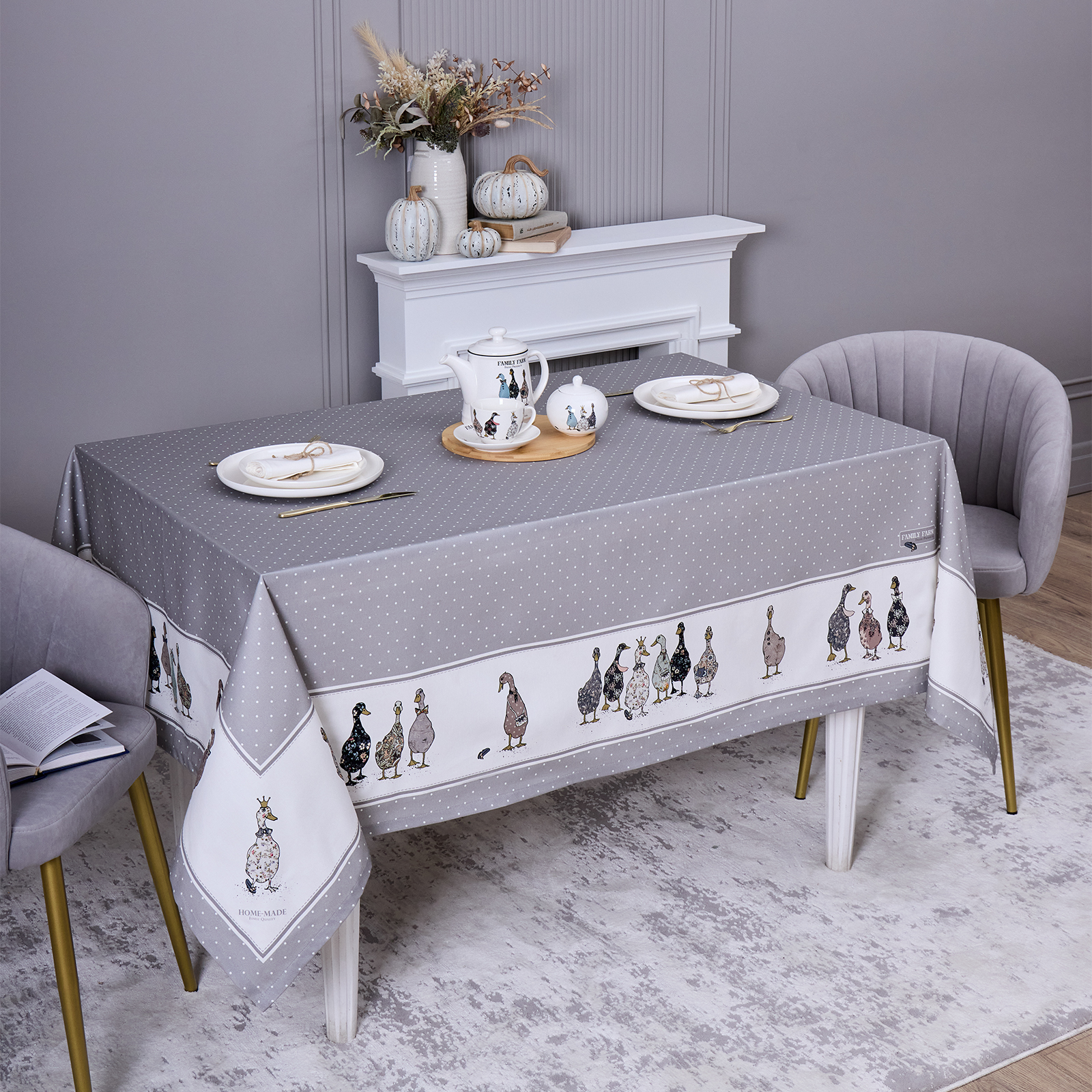 СКАТЕРТЬ "FAMILY FARM" 160Х220СМ , 100% ХЛОПОК, СЕРЫЙ, ТВИЛ, ПРОПИТКА