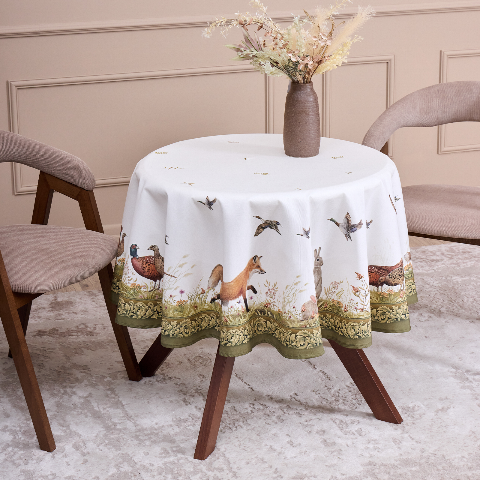 Круглая скатерть из коллекции «Охота» от Lefard — практичный и декоративный акцент для сервировки стола.