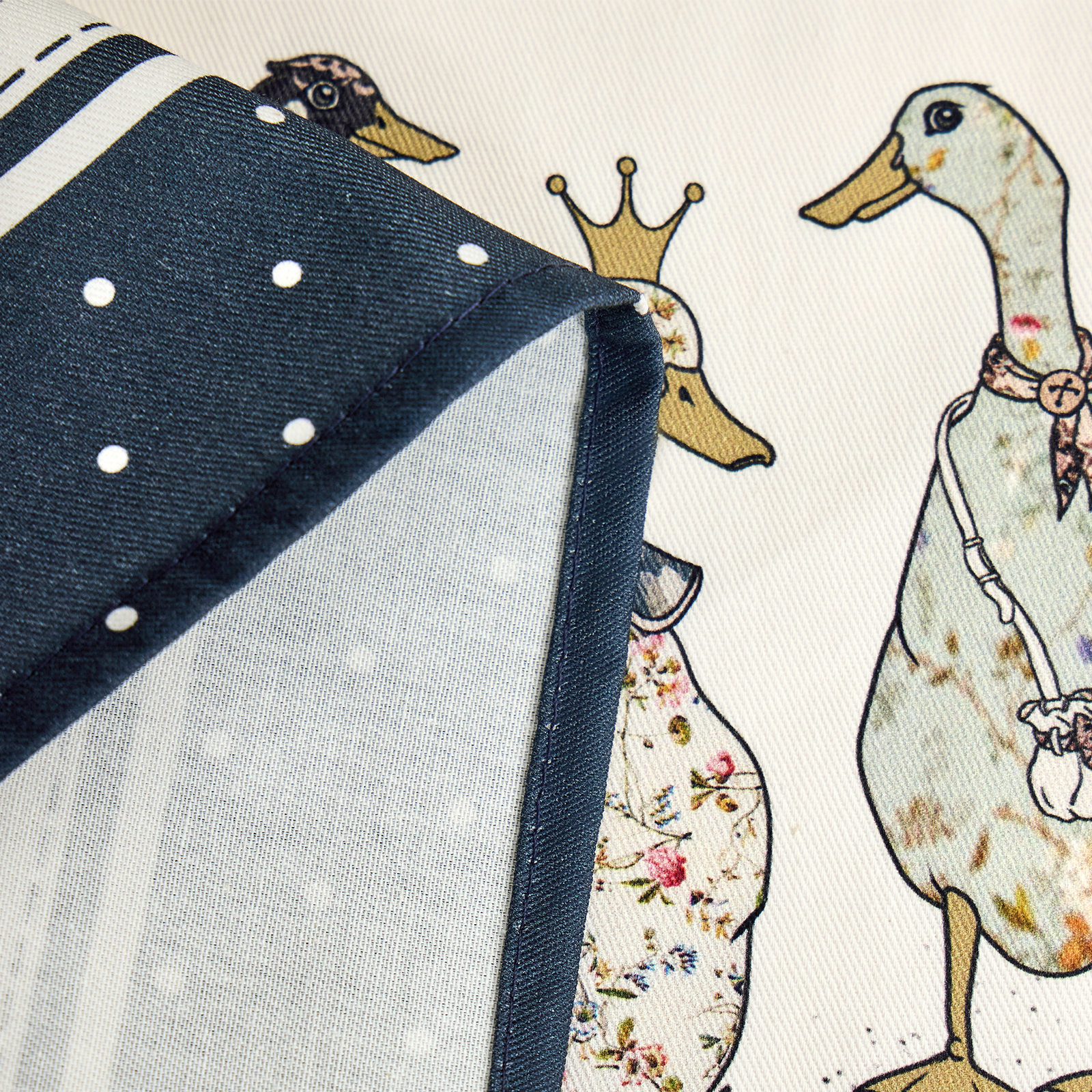 Такая скатерть станет отличным дополнением к интерьеру вашей кухни. Тканевая синяя скатерть, украшенная ярким и забавным принтом с гусями, создаст летнюю атмосферу в вашем доме или на даче. Эта водостойкая скатерть придется по вкусу всем ценителям красивого текстиля.Она будет ярким акцентом вашего кухонного стола.