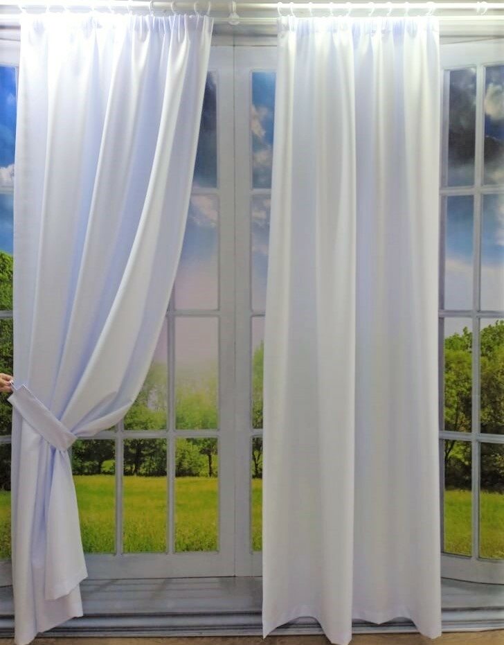 Шторы из габардина "Liza" белый 140х260 см - 2 шт + 2 подхвата