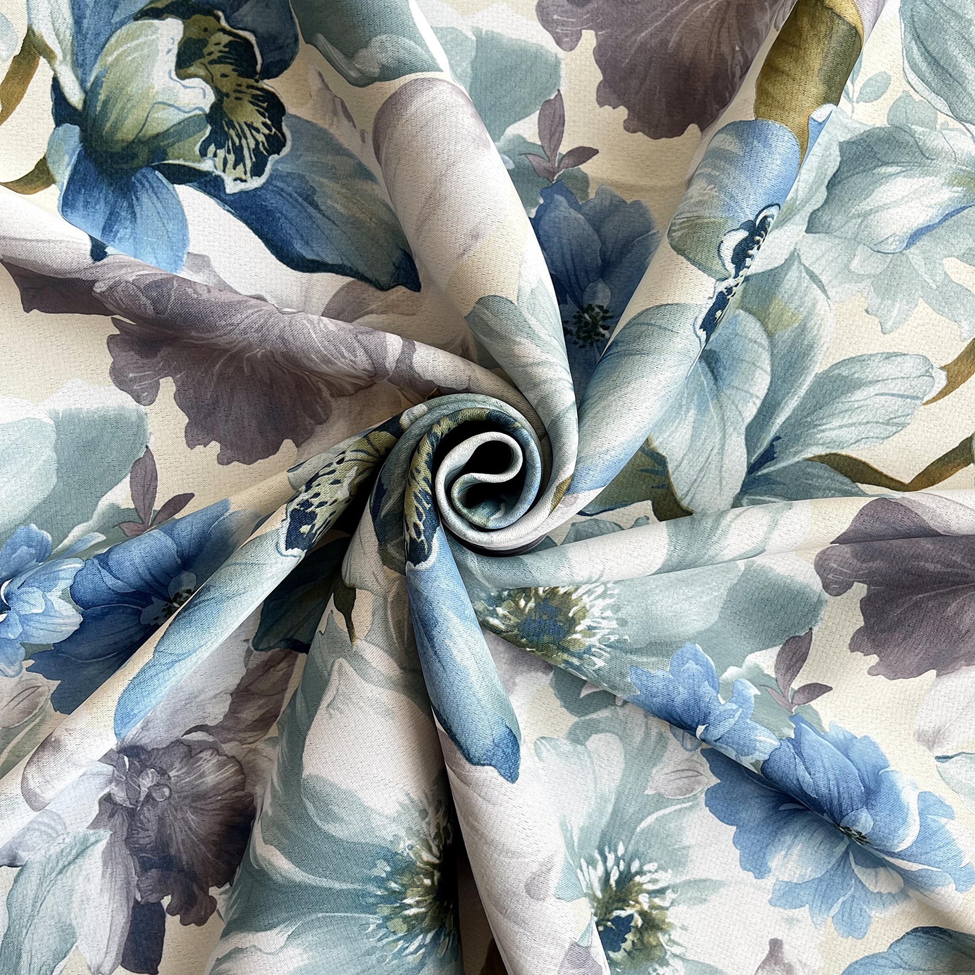 Блэкаут Лен рисунок цветы 1688-1 голубой 280 см