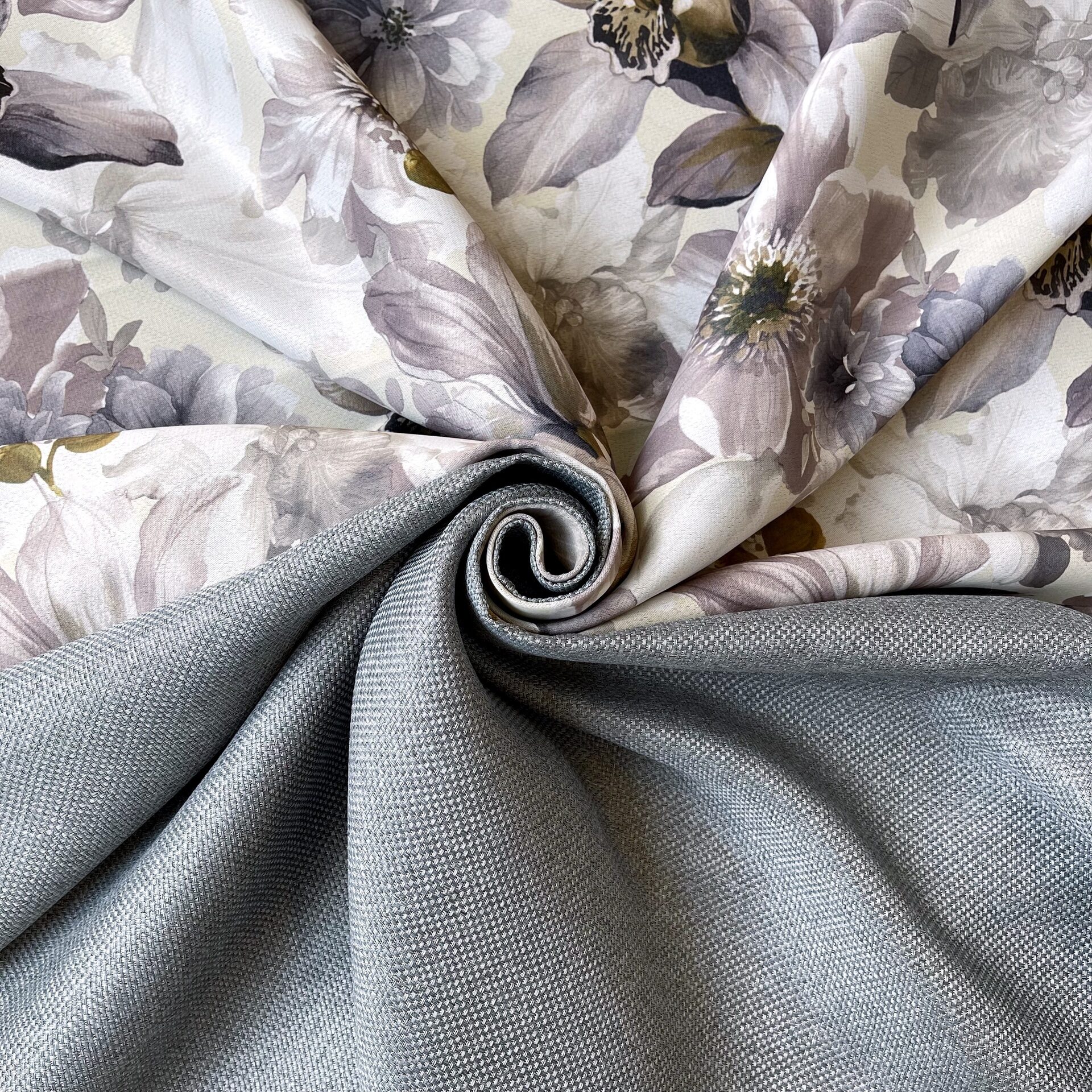 Блэкаут Лен Рогожка MY рисунок цветы мелкие серый 280 см