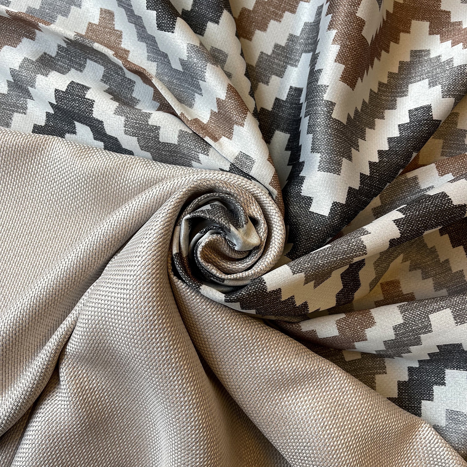 Блэкаут Лен Рогожка MY зигзаг серый-коричневый 280 см