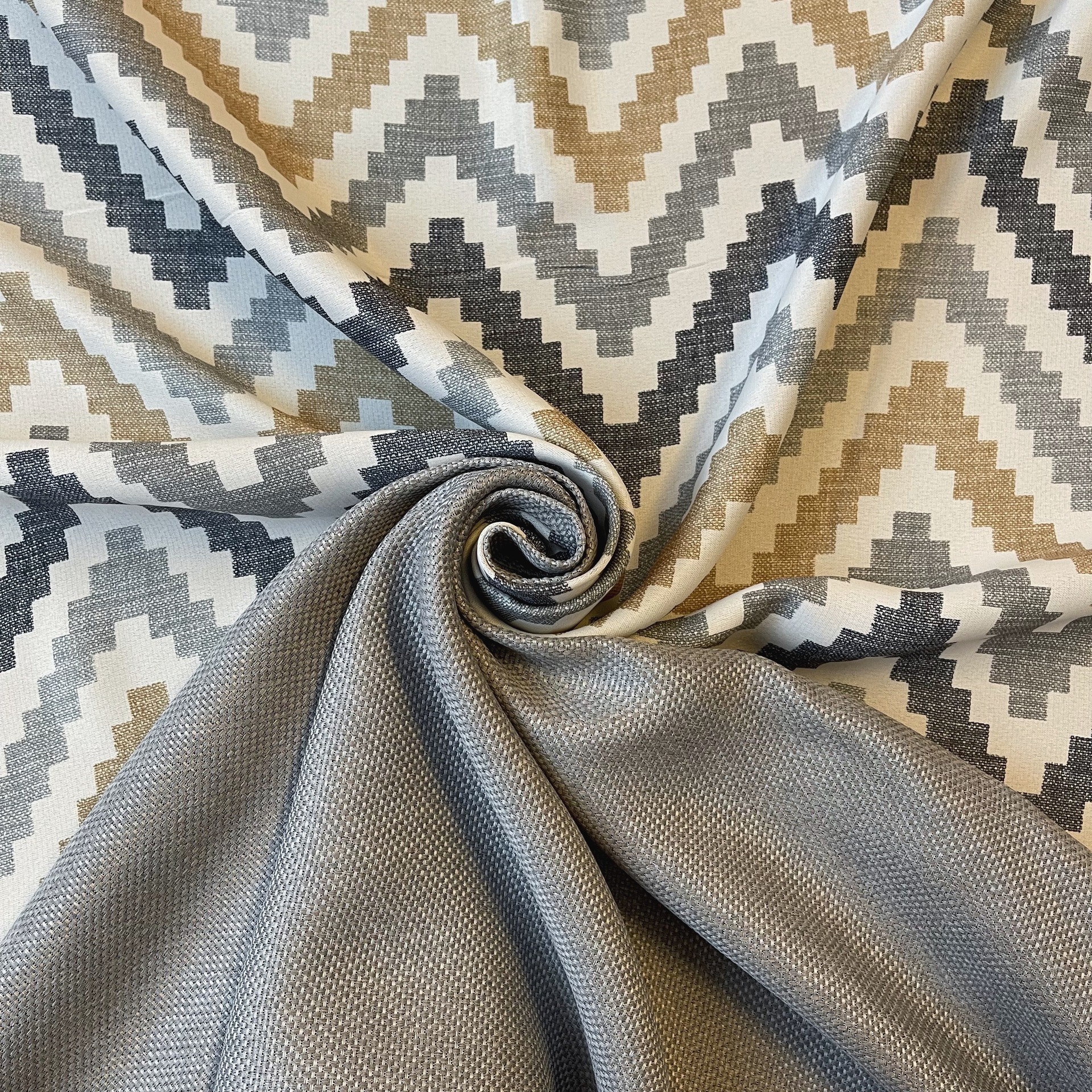 Димаут Лен Рогожка 1828 зигзаг серый-желтый 280 см