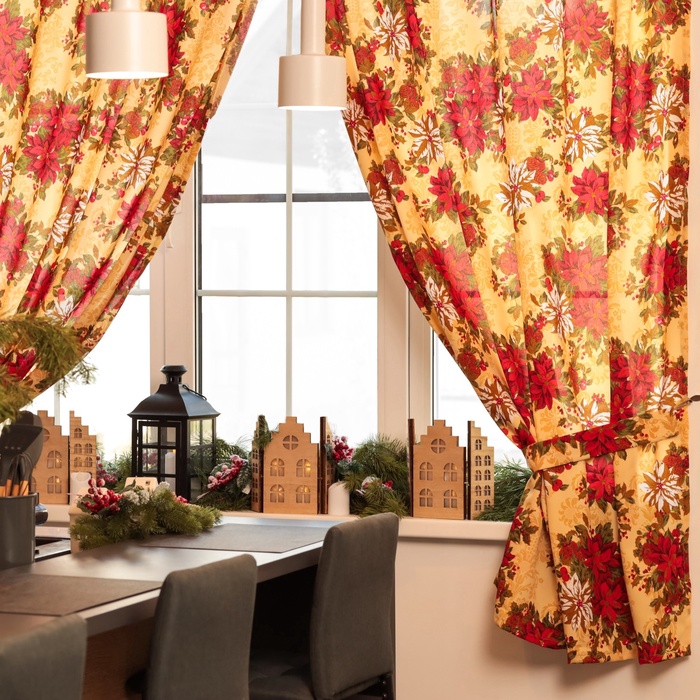 Комплект кухонных штор «Доляна» в солнечных тонах становится необычным решением для новогоднего оформления. Жёлтый цвет создаёт ощущение тепла и света в период коротких зимних дней.