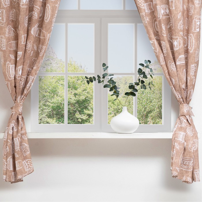 Шторы для кухни «Доляна» Cup of tea 150×180 см- 2 шт., подхваты - 2 шт., 164 г/м², 100% хлопок