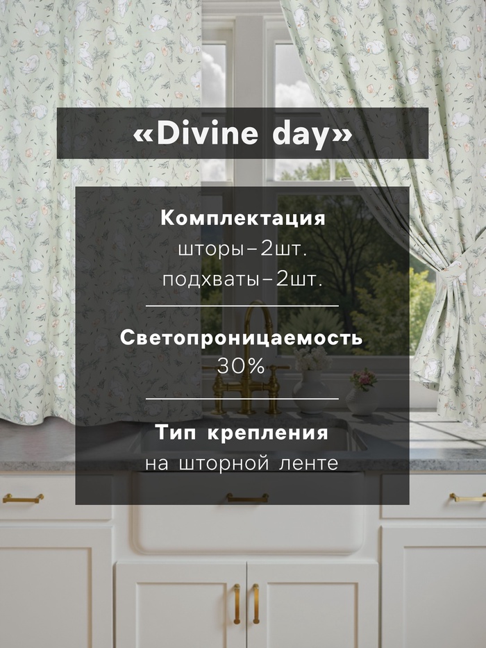 Шторы для кухни с подхватами Divine day, 150×180 см - 2 шт., рогожка 176 г/м²