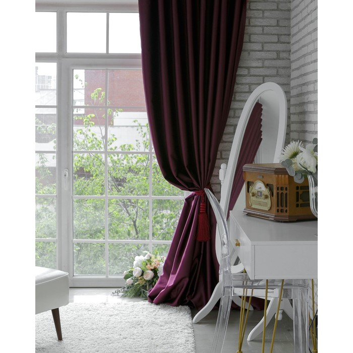 Штора блэкаут портьерная «Этель», 250×265 см, сливовый