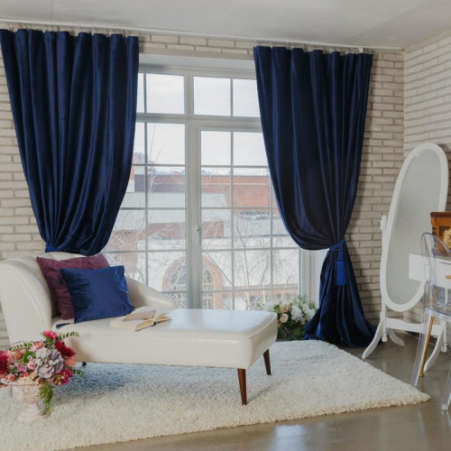 Штора блэкаут портьерная «Этель» Natural, 130×300 см, синяя, рогожка 275 г/м²