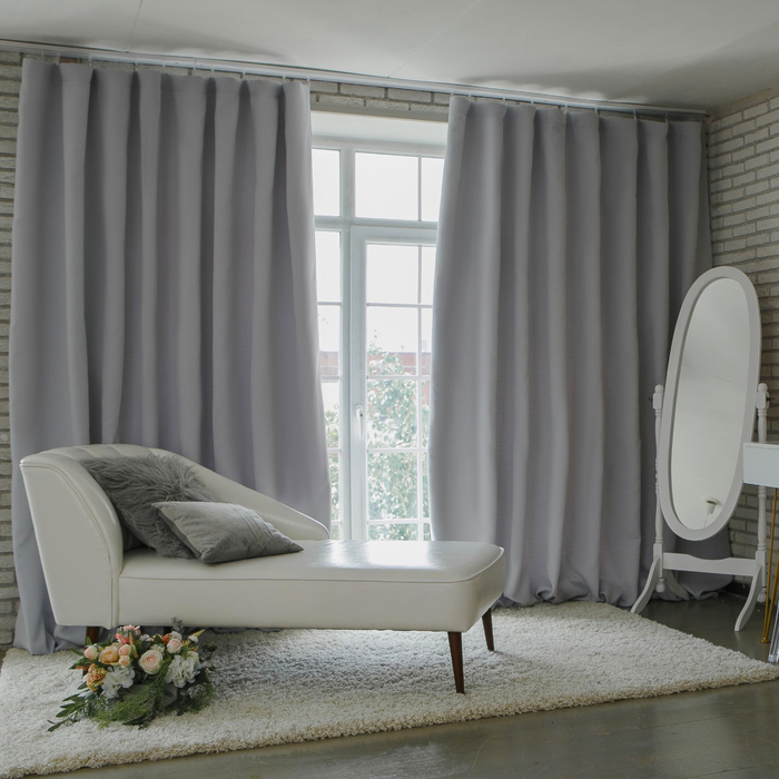 Штора блэкаут портьерная «Этель», размер 250×265 см, цвет металл