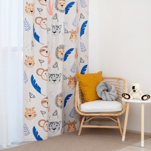 Штора портьерная «Этель. Динозавры», 145×260 см, рогожка