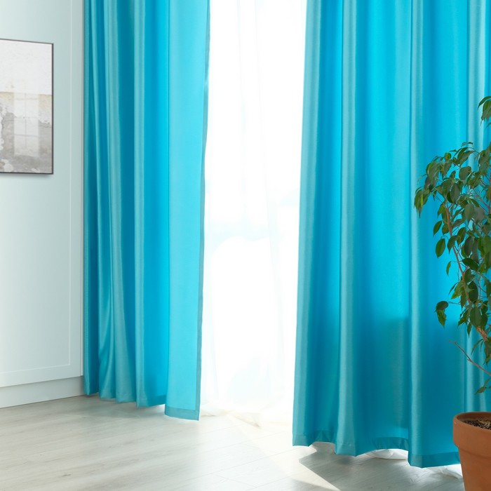 Штора портьерная «Этель» ширина 135 см, высота 260 см, цвет бирюзовый, глянцевая