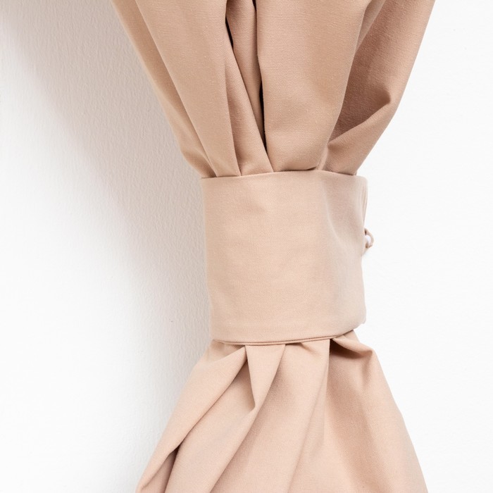 Тёплый бежевый цвет и мягкий рассеянный свет визуально делают пространство уютнее и просторнее. Плотная хлопковая ткань хорошо драпируется и долго служит, а продуманная комплектация из двух штор и подхватов сразу решает задачу оформления окна. Это практичное решение для кухни, где важны и эстетика, и удобство в ежедневном уходе.