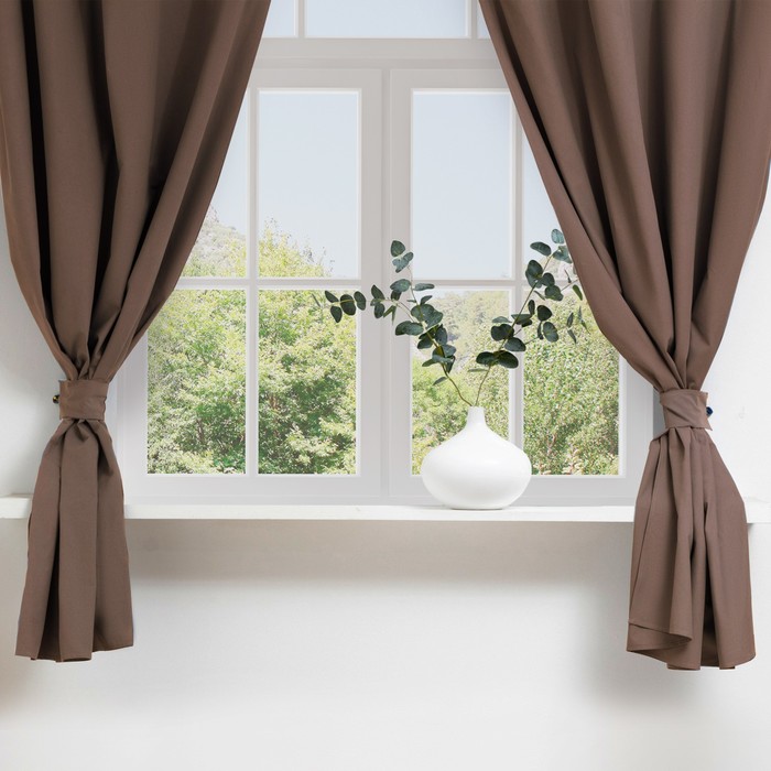 Этот комплект коричневых штор с подхватами создан для кухни. Он сочетает практичность в уходе с тёплой и уютной атмосферой. Две плотные портьеры из натурального хлопка мягко рассеивают дневной свет, сохраняя ощущение простора. Подхваты помогают красиво зафиксировать полотна, освобождая пространство у окна.