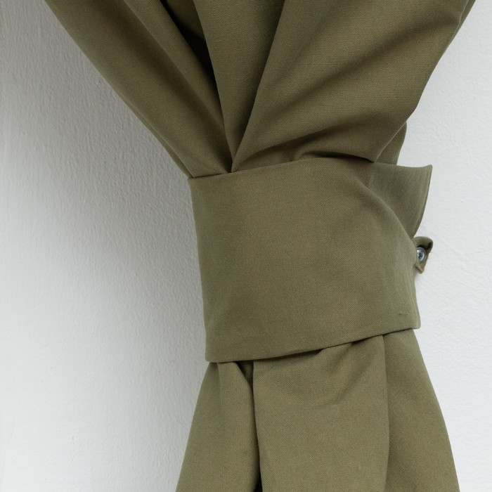 Спокойный зелёный цвет и мягкая фактура ткани добавляют интерьеру тепла и гармонии. Подхваты позволяют менять конфигурацию: соберите шторы для максимального освещения или отпустите их для создания мягких складок. Этот комплект работает круглый год, сочетаясь с разными стилями — от классики до современного кантри.