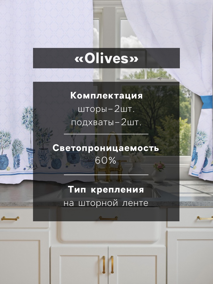 Шторы для кухни с подхватами Этель Olives, 145×180 см, комплект - 2 шт.