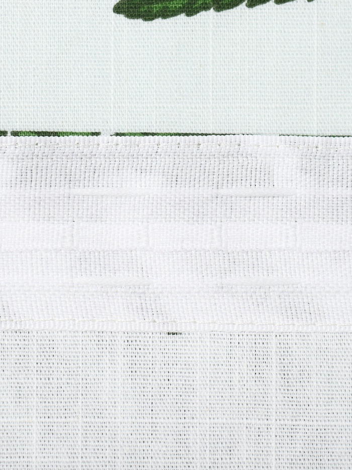 Набор из двух штор с подхватами для кухни создаёт лёгкую и свежую атмосферу. Белый фон с рисунком зелёного папоротника напоминает о летней листве, пропускающей солнечный свет. Плотный хлопковый репс хорошо держит форму и долго служит, а классическая шторная лента упрощает развешивание и создаёт аккуратные складки.