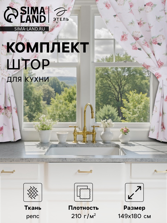 Комплект «Нежность» с его лёгким рисунком и пастельными оттенками превращает кухню в светлое и по-домашнему тёплое пространство. Подхваты помогают управлять светом и пространством у окна, освобождая подоконник. Это решение для тех, кто ценит в интерьере гармонию, практичность и ненавязчивую эстетику, которая радует каждый день.