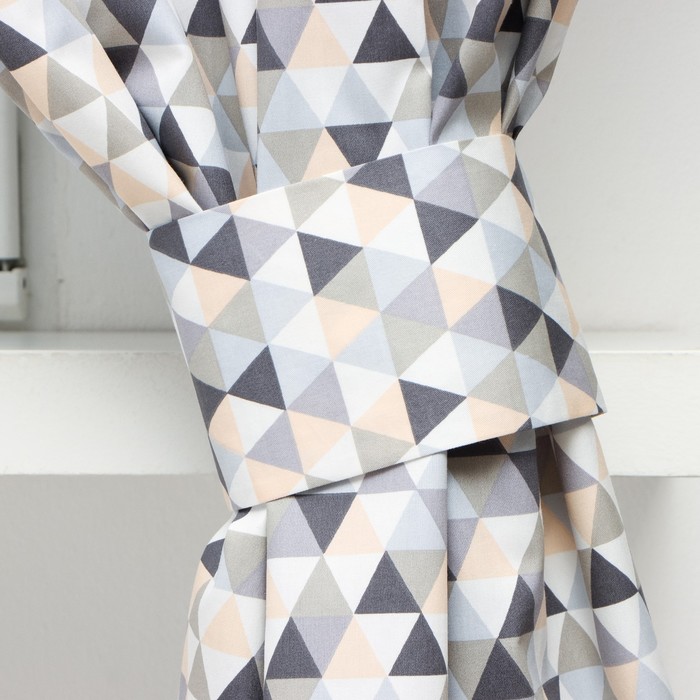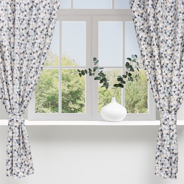 Шторы для кухни «Этель. Треугольники», 149×180 см - 2 шт., подхваты - 2 шт.
