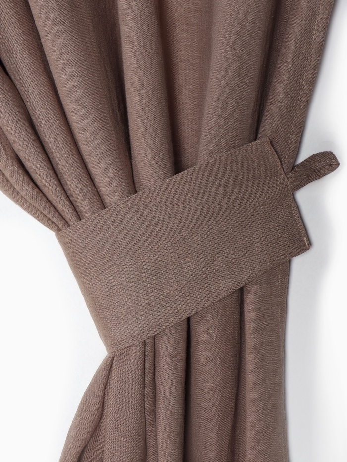 Этот комплект из двух коричневых штор для кухни создаёт уютную и стильную атмосферу. Плотная льняная фактура ткани обеспечивает мягкое рассеивание света, сохраняя ощущение простора даже в небольших помещениях. В набор входят два практичных подхвата, чтобы вы могли легко менять образ окна.