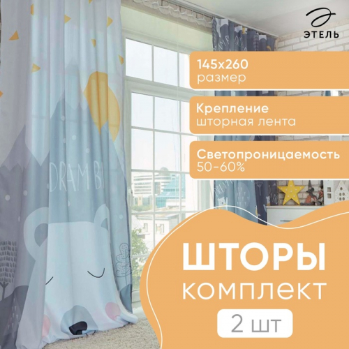 Шторы портьерные «Этель. Большие мечты», 145×260 см, 2 шт., габардин